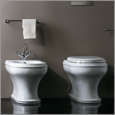 Il bidet da terra Charme in ceramica bianco lucido, design Laudani & Romanelli, è elegante e funzionale.