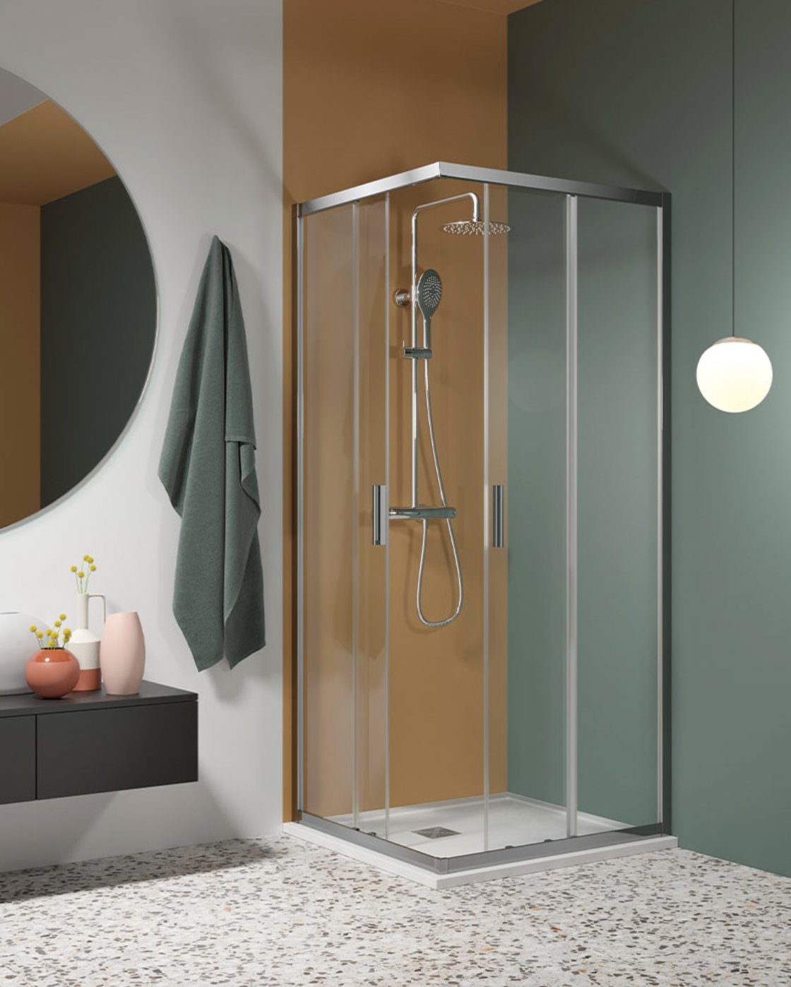 Il meccanismo a scorrimento dell’anta garantisce un’apertura fluida e silenziosa, ottimizzando lo spazio davanti al piatto doccia e rendendo la cabina particolarmente adatta a bagni di dimensioni ridotte o a spazi limitati. Lo scorrimento è progettato per durare nel tempo, mantenendo costante fluidità e sicurezza.