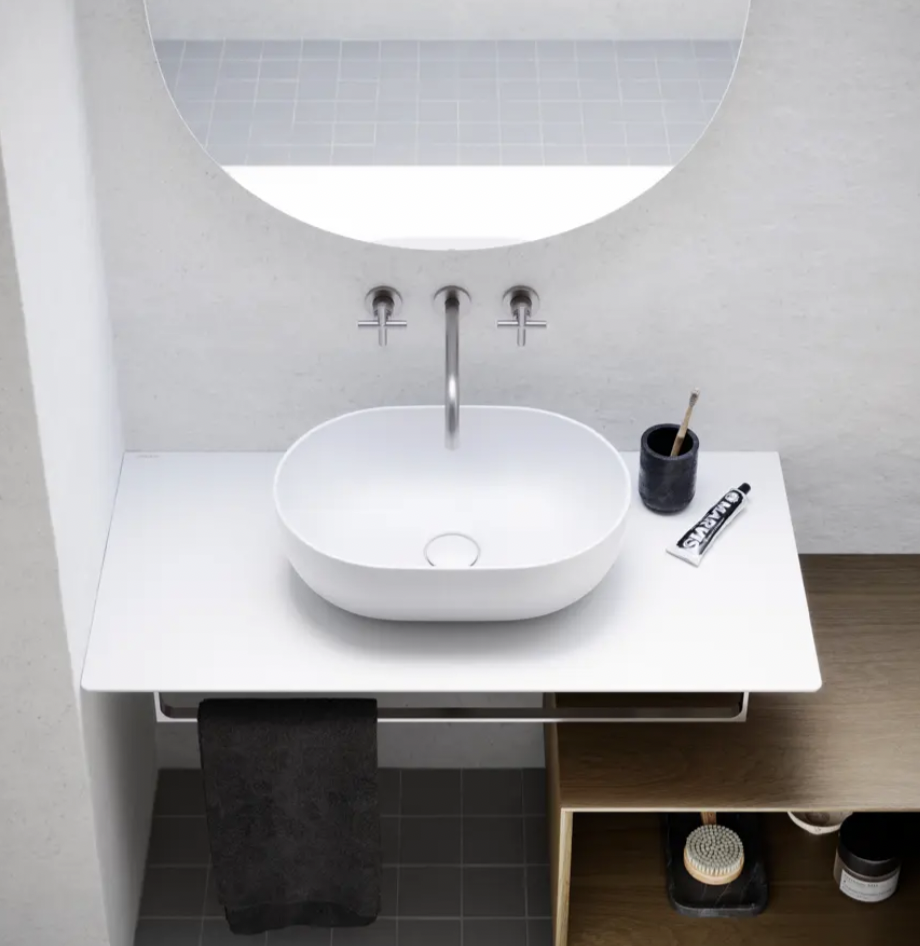 Progettato per essere installato ad appoggio su mobile o piano bagno, il lavabo Sfera offre praticità e facilità di integrazione nell’arredo esistente. L’assenza del troppopieno valorizza il design minimale, rendendo la superficie più pulita e ordinata.