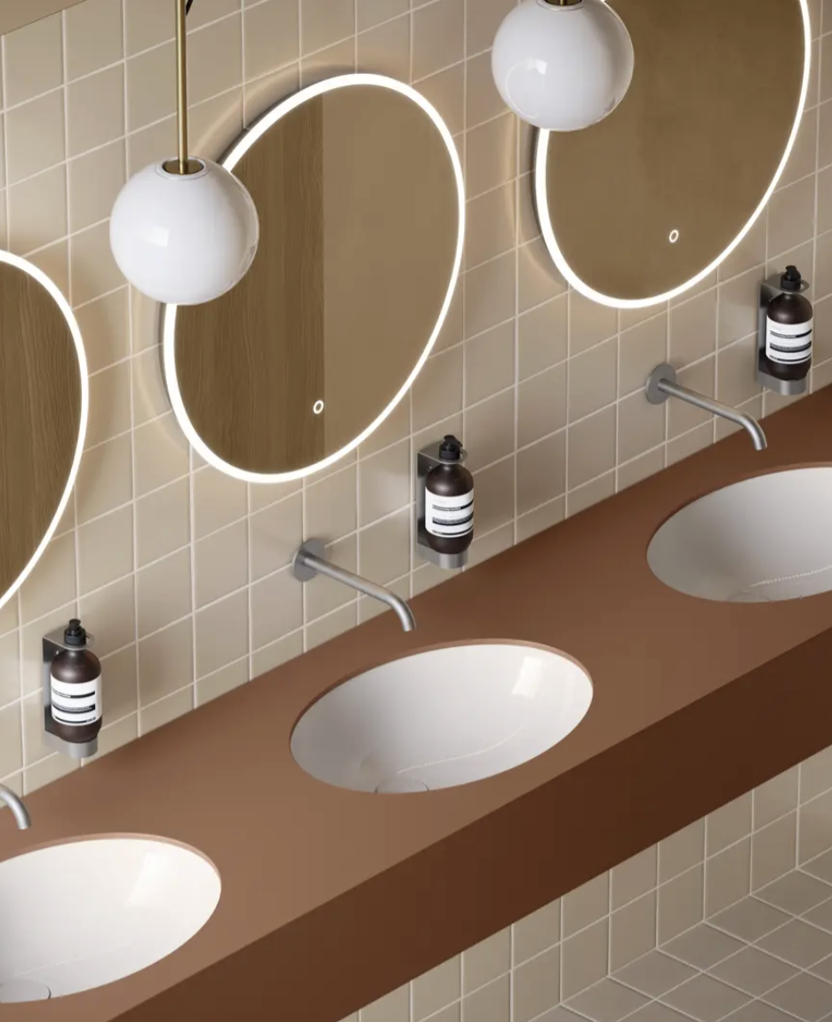 Dotato di troppopieno, il lavabo assicura un utilizzo sicuro e affidabile, prevenendo fuoriuscite accidentali d’acqua durante l’uso quotidiano. Il modello è studiato per installazione sottopiano, una soluzione che permette una perfetta integrazione con il piano del mobile o del top bagno, valorizzando materiali come marmo, legno o superfici tecniche e creando un effetto estetico pulito ed essenziale.