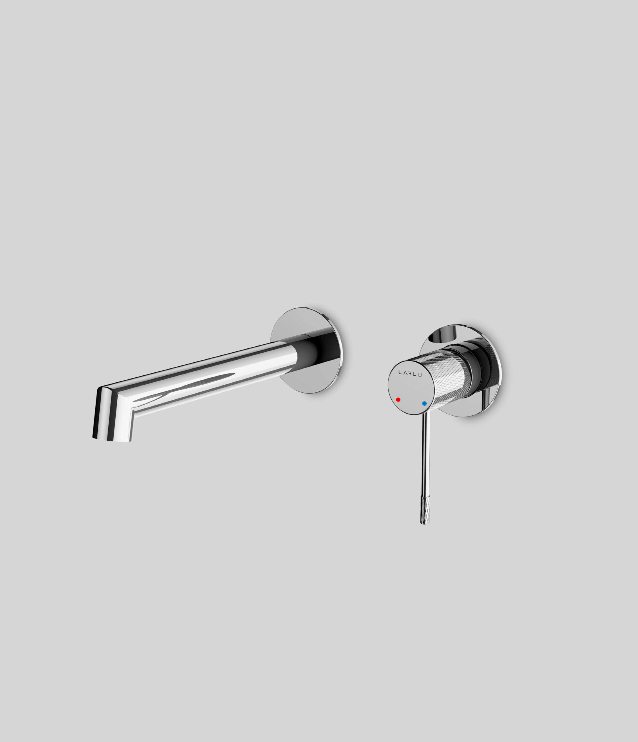 Miscelatore dal design moderno ed essenziale, ideale per installazioni a parete. Libera spazio sul lavabo e dona un aspetto elegante al bagno.