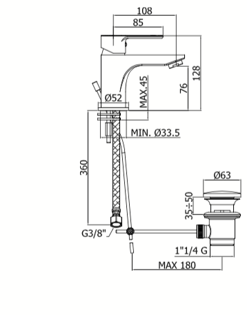 • Scarico automatico incluso: piletta da 1″ 1/4 G con asta a saltarello, per uno scarico semplice e pratico.
